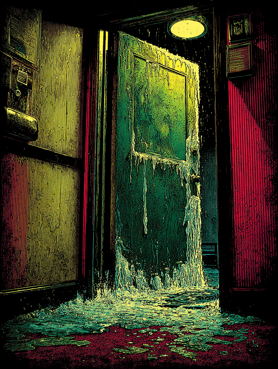 Black terror, however, had preceded me. The house was in utter turmoil, and above the chatter of awed voices I heard a man praying in a deep basso. Fiendish things were in the air, and lodgers told over the beads of their rosaries as they caught the odour from beneath the doctor’s closed door. The lounger I had hired, it seems, had fled screaming and mad-eyed not long after his second delivery of ice; perhaps as a result of excessive curiosity. He could not, of course, have locked the door behind him; yet it was now fastened, presumably from the inside. There was no sound within save a nameless sort of slow, thick dripping.