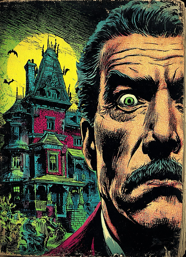 “Do you know what the place is? Have you seen that awful den of hellish infamy—with the very moonlight alive with grisly shapes, and every speck of dust that whirls in the wind a devouring monster in embryo? Have you felt the Vampire’s lips upon your throat?” Here he turned to me, and as his eyes lit on my forehead he threw up his arms with a cry: “Oh, my God, what have we done to have this terror upon us!” and he sank down on the sofa in a collapse of misery. The Professor’s voice, as he spoke in clear, sweet tones, which seemed to vibrate in the air, calmed us all:—
