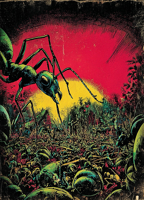 The ranch house and outbuildings stood upon rising ground. Their foundations were higher than the breakwater, so the flood would not reach them. And any remaining ants trying to ascend the slope could be repulsed by petrol.