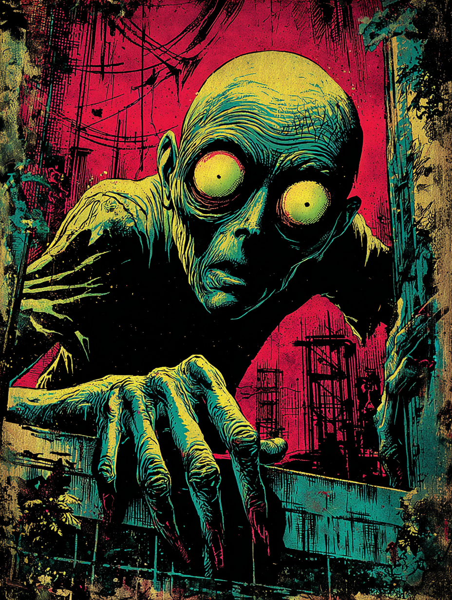 Gad, how that man could paint! There was a study called “Subway Accident”, in which a flock of the vile things were clambering up from some unknown catacomb through a crack in the floor of the Boylston Street subway and attacking a crowd of people on the platform. Another shewed a dance on Copp’s Hill among the tombs with the background of today. Then there were any number of cellar views, with monsters creeping in through holes and rifts in the masonry and grinning as they squatted behind barrels or furnaces and waited for their first victim to descend the stairs.